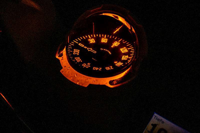 In the night, sailing through the darkness, the moon hidden behind the trade wind clouds, the warm glow of the magnetic compass helps to navigate through squalls (local strong winds) with a little rain and through calms. It leads us North East, to the Azores.
