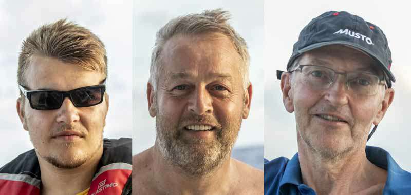 The three sailors Finn, Markus and Uwe after four days on the open ocean. The harmony is good, and the boat managent skilled and easy.
