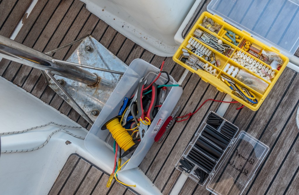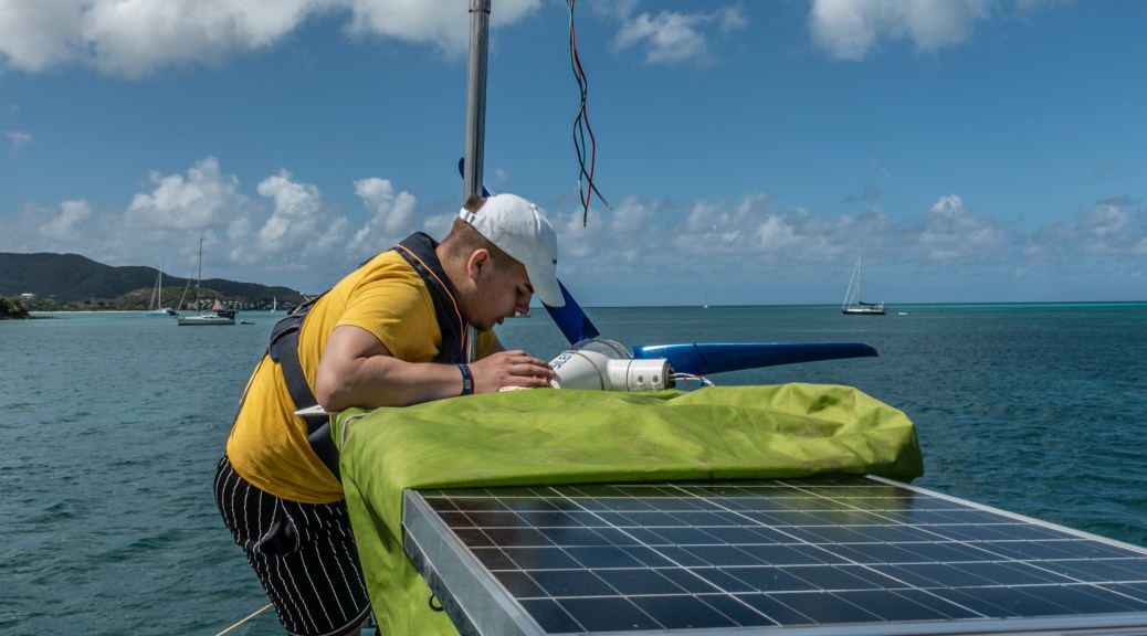 I always hope to get onto the boat and everything works perfectly. However, all yachtsmen know that you alway have a list of to dos on a boat. The rear rack (Heckträger) that holds the solar panels and the wind generator had to be welted (geschweißt) and the wind generator had to be mounted and connected electrically again.