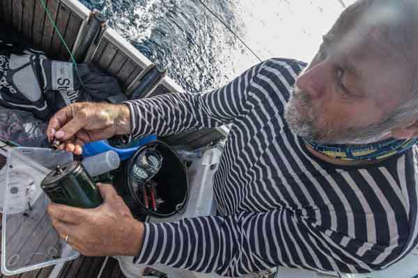 The last days two days were demanding for the crew. Our self steering windvane system (fully mechanical without need for electricity) didn’t like the unbalanced set of sails (storm headsail and main sail with one reef) and didn’t steer properly. Additionally, our electric autopilot broke and we had to replace the connection between the motor and the hydraulic pump. (Thank you, Markus.I now know while some blue water sailors take a full backup autopilot system as an emergency spare with them). Now everything works perfect and we even managed to maintain a good speed (about six knots) in these difficult days with little sleep and damp clothes. Less than 400 miles to the Azores…