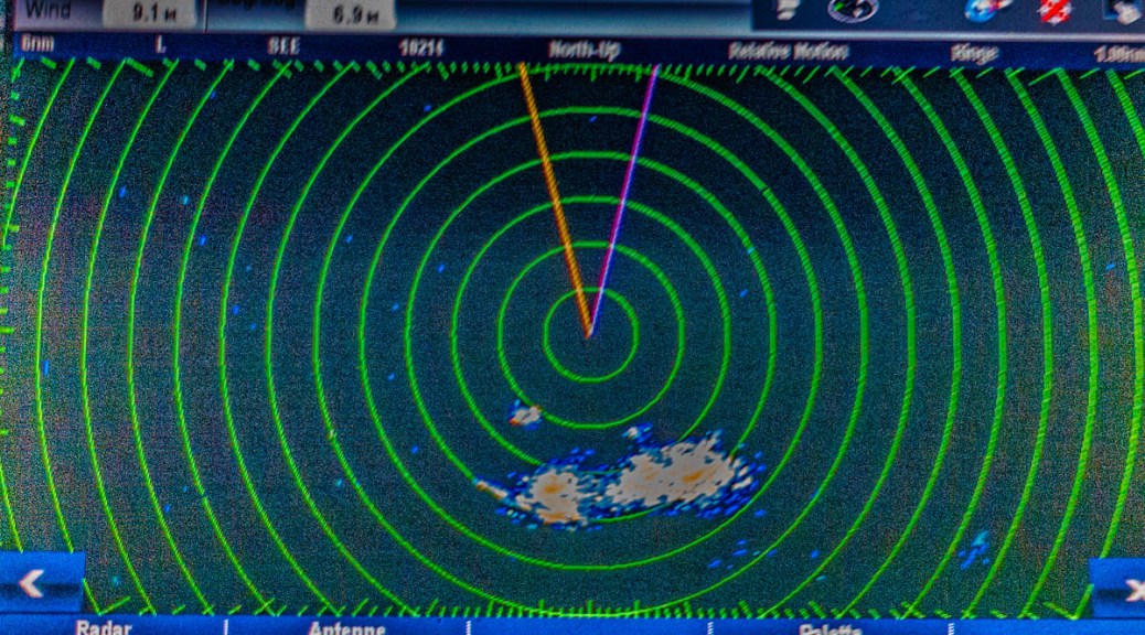 Skipper, Rudergänger oder der Smut – je nach Situation – fordern alle zum Erscheinen an Deck auf. Rufen Skipper oder Rudergänger, so ist dies meist mit Arbeit (z.B. Manöver) verbunden. Bittet der Smut, so wird verpflegt. Zumindest für zwei an Bord die weniger „anstrengende” Zusammenkunft. Obwohl, es wartet der Abwasch auf einen der beiden… (Gastbeitrag Markus). Bild: Ein Squall (Unwetter) im Radar erfordert All Hands on Deck.