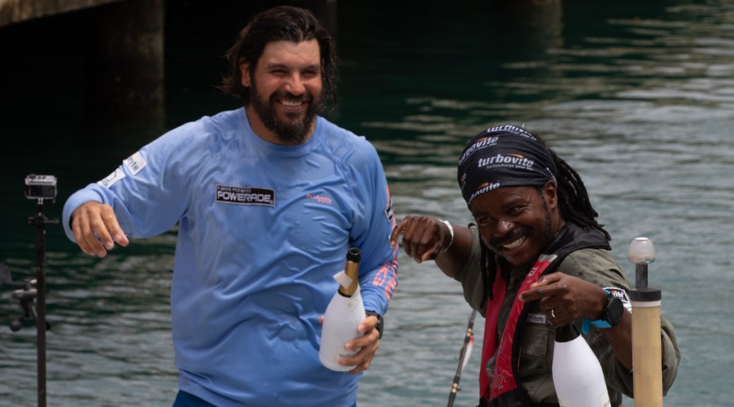 Another rowing boat arrived in Barbedos yesterday after six weeks of crossing the Atlantic Ocean and made landfall next to Orinoco at the St. Charles yachting club. The “Odyssey” of Riaan Manser and his friend is unrelated to the rowing journey of Dawn of sailingaurora.co.uk, the English lady we met a few hundred miles before Barbedos. She has not yet reached Barbedos. And there seems to be another guy crossing the ocean: a French adventurer in a barrel (Tonne) on his way to Brasil.