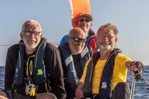 We have seven sails on board. Two of them we hope to never need: the storm jibe (Sturmfock) and the Trisail (Try-Segel). Both are very small, but strong. They are red, as in conditions above eight Beaufort visibility decreases. We did set these sails in light weather conditions as a part of our security training. Normally, there are no storms in this part of the Atlantic in winter. Even if, good weather predictions are available and would allow us to change our route to avoid storms. Nevertheless, it feels good to be prepared even for the most unlikely event.