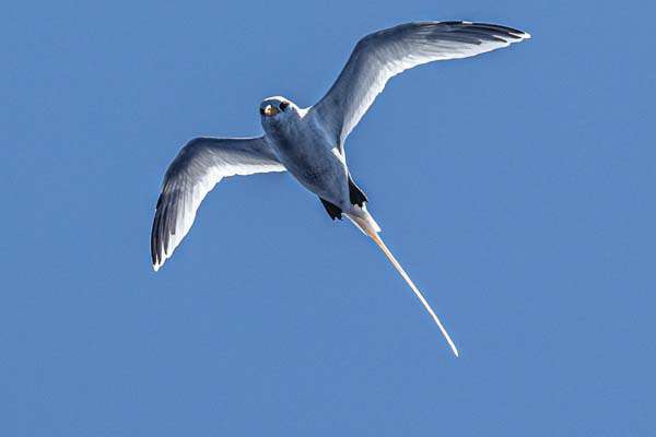 We now sailed 1000 miles on the open ocean, away from the Caribbean Islands, heading North to North East, leaving Bermuda to our left. Getting up at 12 in the night for the night watch is hard, but is rewarded by the Milky Way, Jupiter and Saturn and by moderate winds and waves not as high as before . Not much animals did we see the last days, no dolphins or wales. But one bird is visiting us every day in the afternoon for an hour. I suspect the White Tailed Tropicbird uses our wind acceleration to easily fly 50 meters behind us, thus saving energy. Sometimes it even tries to land on our mast.